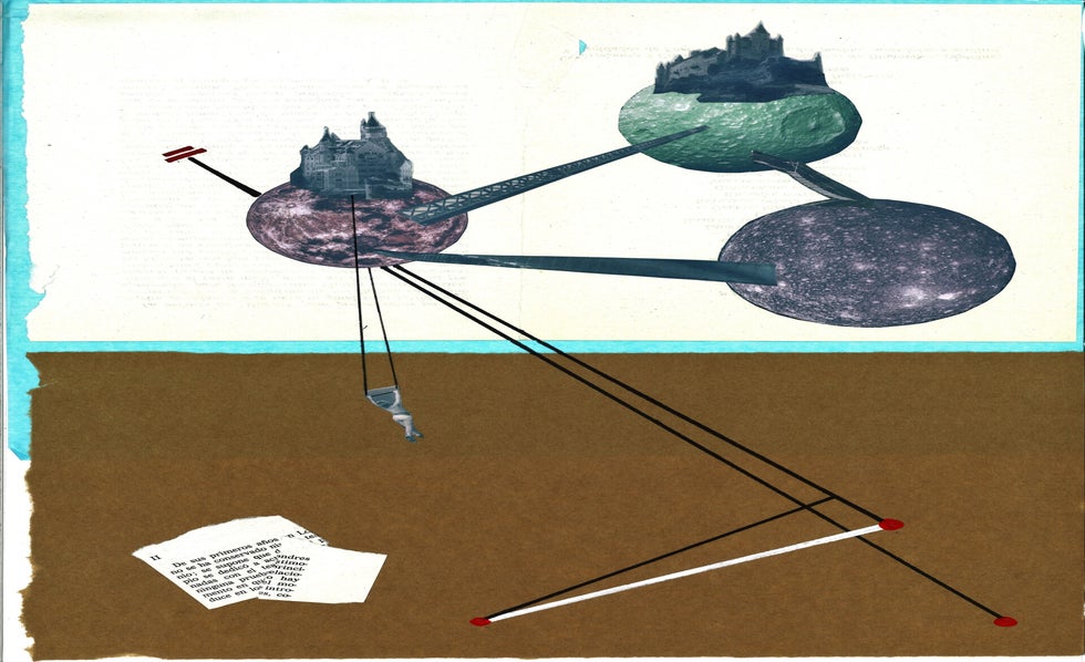 Se trata de una serie de collages para ilustrar las nueve preportadas del libro “Las ciudades invisibles”, del escritor Italo Calvino. Son representaciones metafóricas de la escritura poética de Calvino.